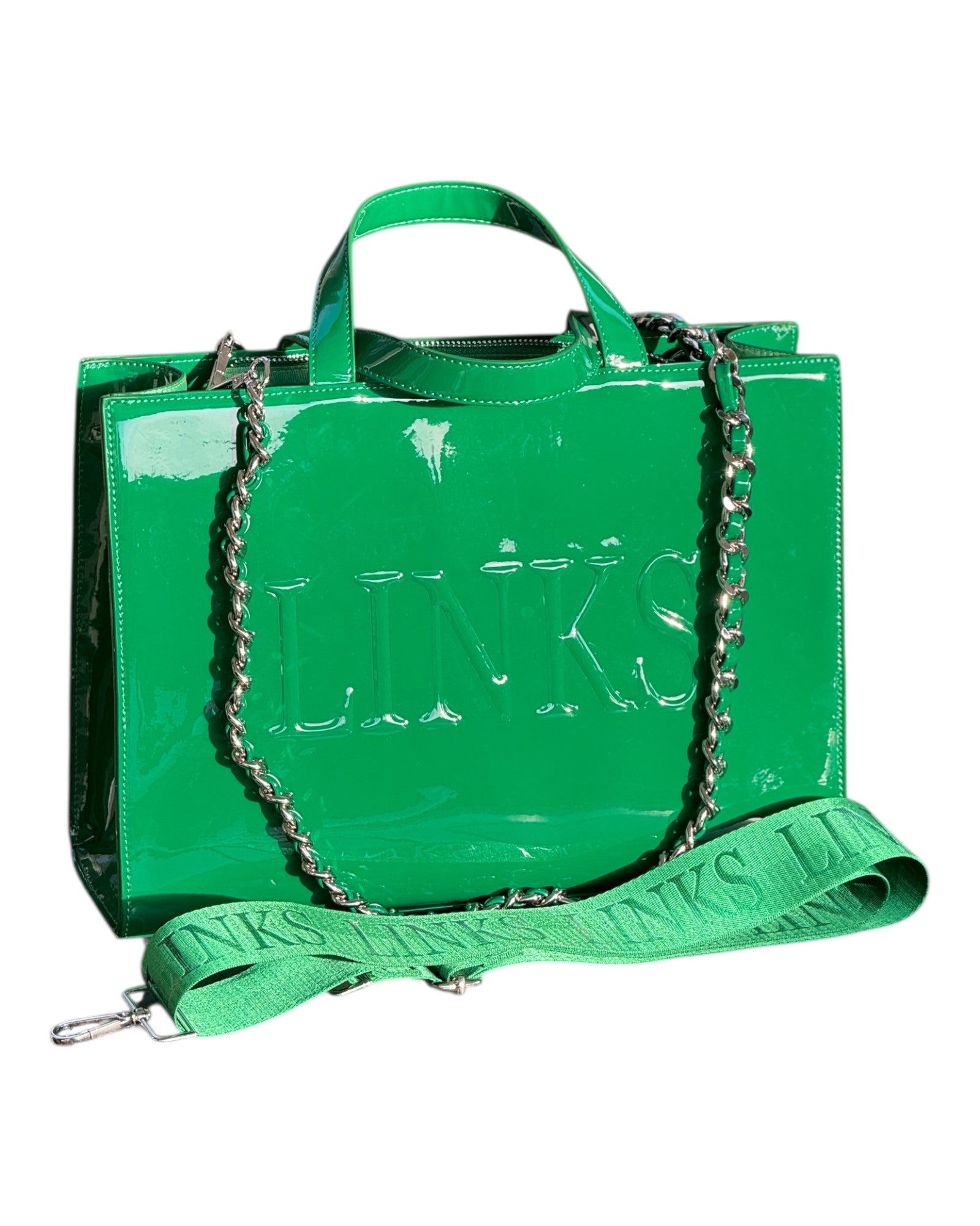 Purse comes with 2 straps, Metal shoulder strap and Embossed Links Crossbody strap.
